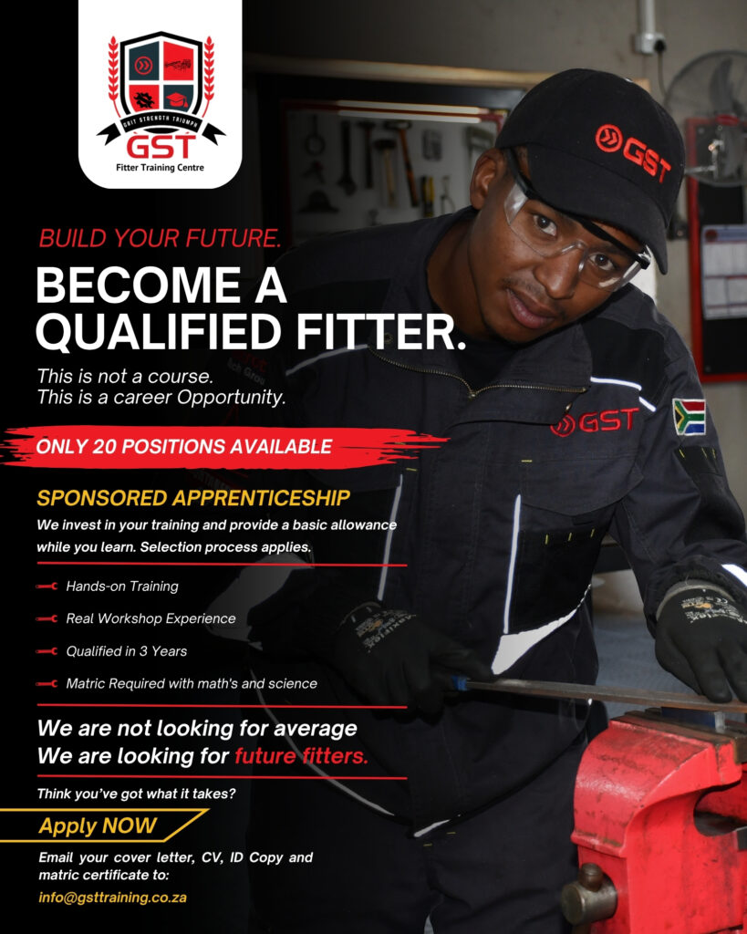 Successful candidates will gain real-world experience by working on live production floors, alongside experienced artisans, and directly with GST’s underground mining machines. As part of this sponsored program, selected apprentices will receive a basic training allowance while they learn, making this a unique opportunity to earn, train, and build a long-term career.